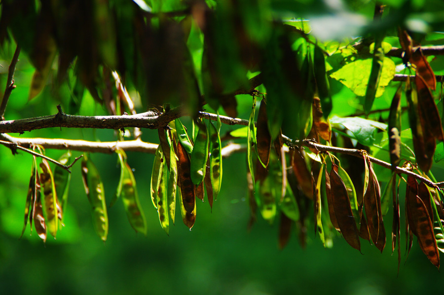 ハナズオウの実。絹サヤみたい。そ~言えば、絹サヤがなってるところ、見たことないや。